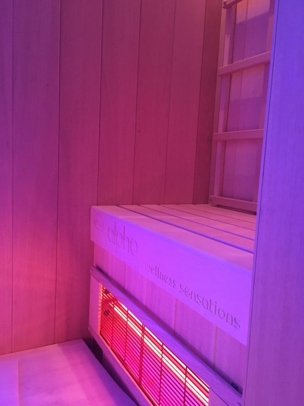 你看得出坐板的顏色與牆體不一樣嗎? 那是因為牆體用的是加拿大紅雪松(cedar),而坐板這種肌膚容易直接接觸到的部分,用的是不易吸熱的歐洲白楊木(aspen)。坐板上都刻有原廠Alpha Wellness Sensations的LOGO,是不是特別有質感呢?