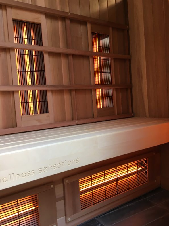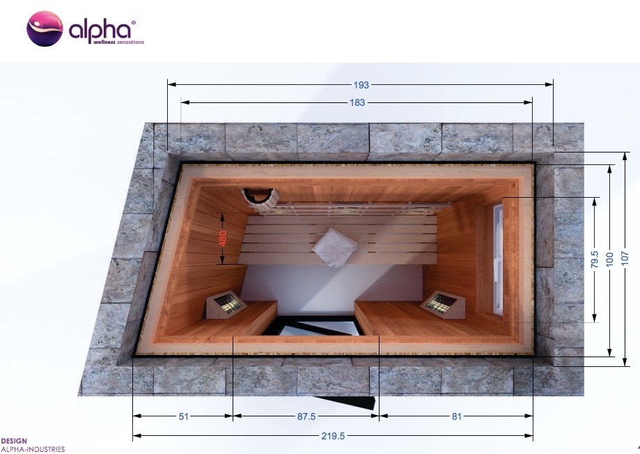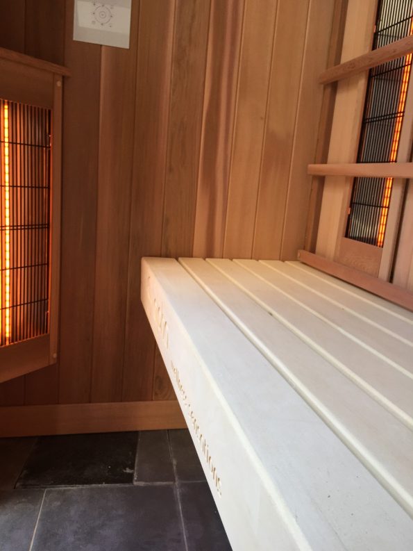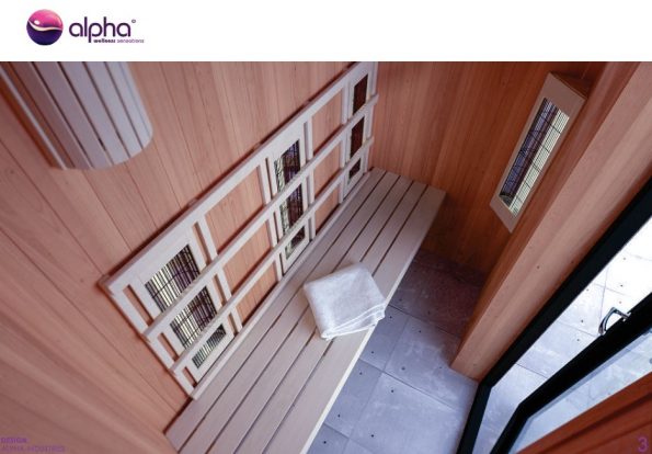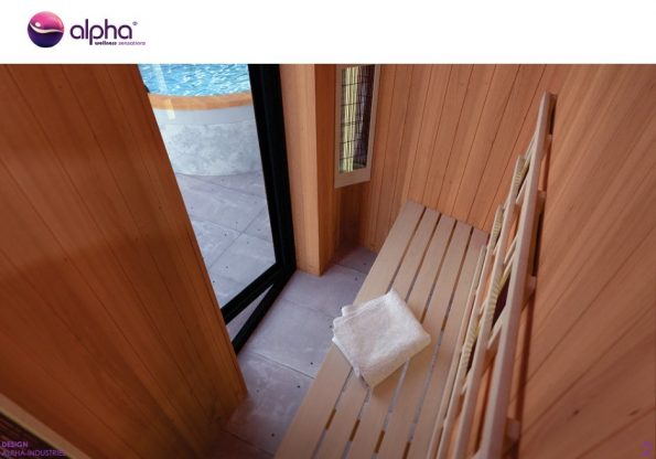 你看得出坐板的顏色與牆體不一樣嗎? 那是因為牆體用的是加拿大紅雪松(cedar),而坐板這種肌膚容易直接接觸到的部分,用的是不易吸熱的歐洲白楊木(aspen)。坐板上都刻有原廠Alpha Wellness Sensations的LOGO,是不是特別有質感呢?