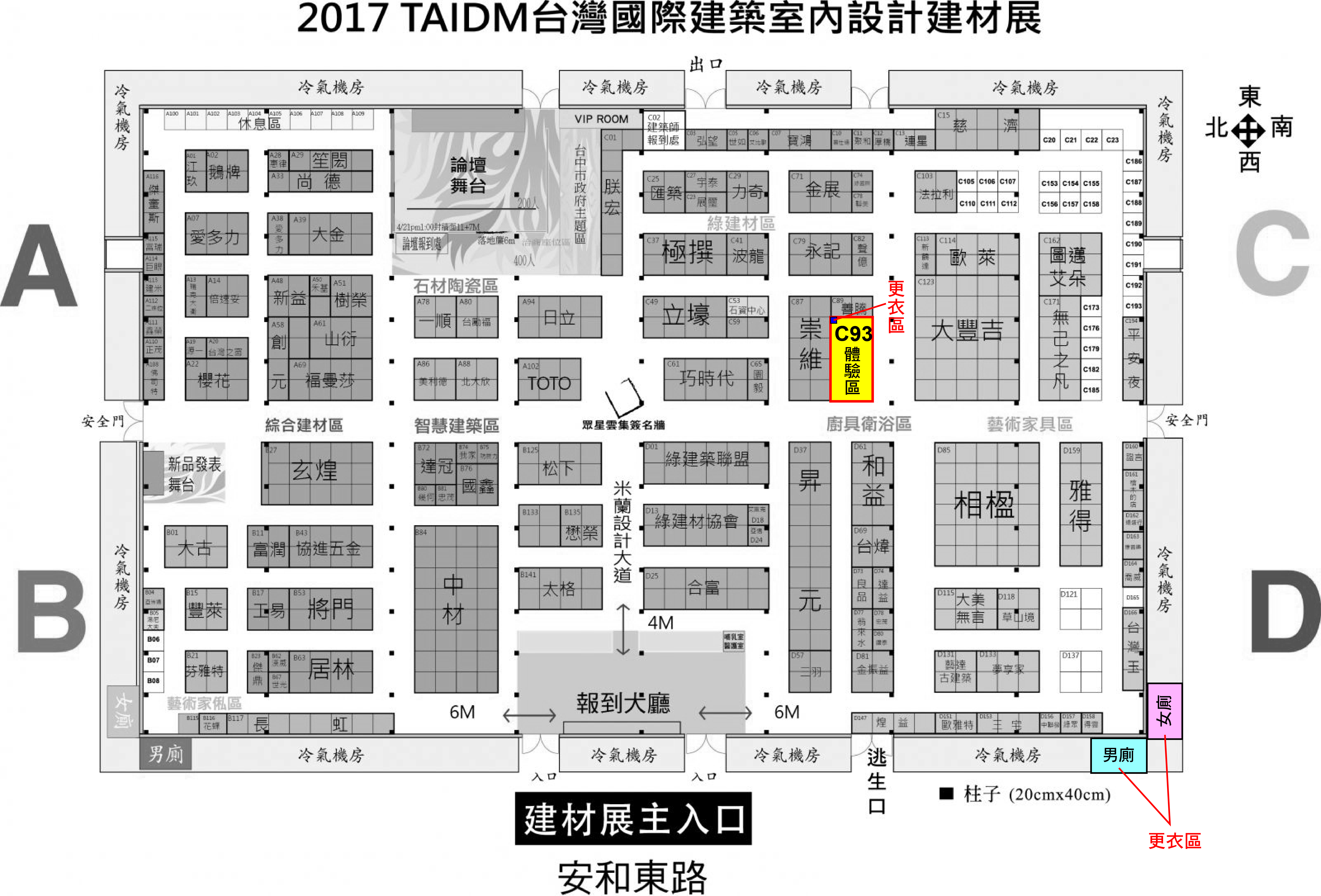 *體驗區位於攤位C93,詳細位置如下。可利用體驗區內設置的簡易更衣室,或是展場大會的男女廁進行更衣。